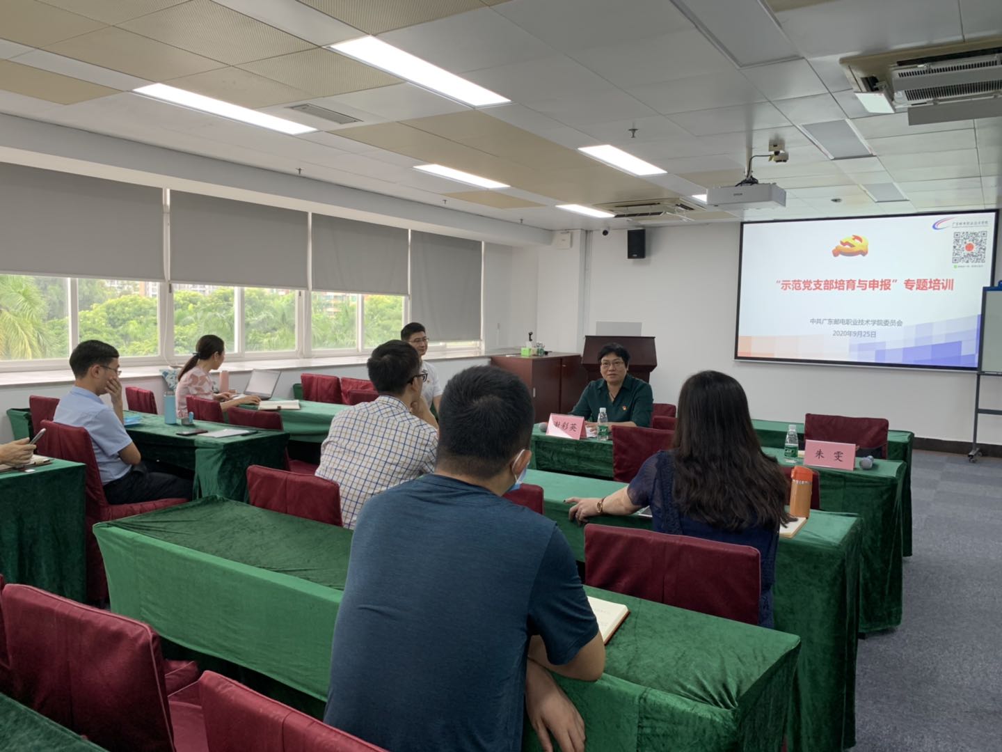 2020年9月25日,我院党总支书记谢彩英、组织员朱雯一行受邀参加广东邮电职业技术学院组织的党支部委员培训——“示范党支部培育与申报”专题,并作党建“双创”工作的经验分享,参加培训的有广东邮电职业技术学院各党支部委员。