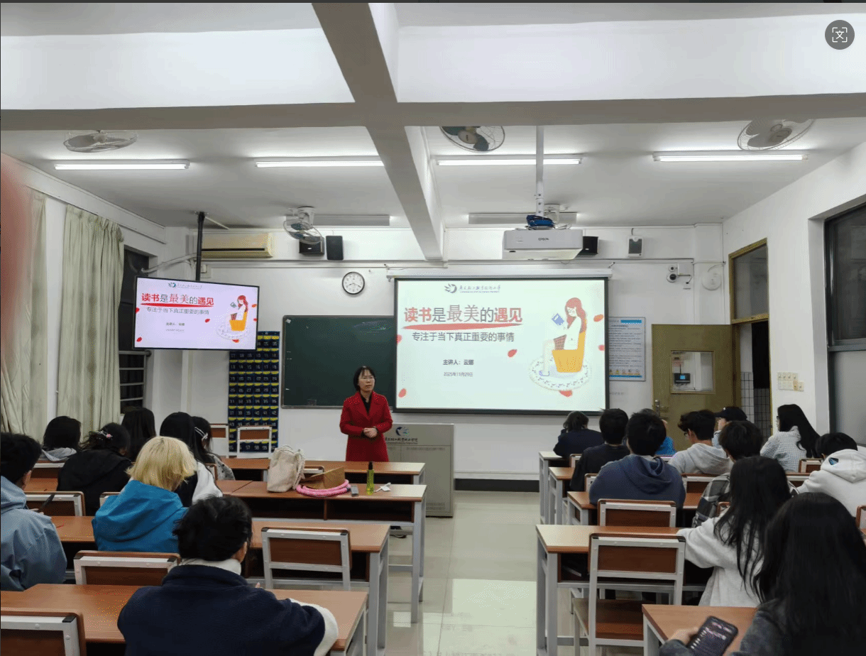 11月20日晚,云娜副院长在2号楼509室为学生干部们讲授《读书是最美的遇见》主题思政课
