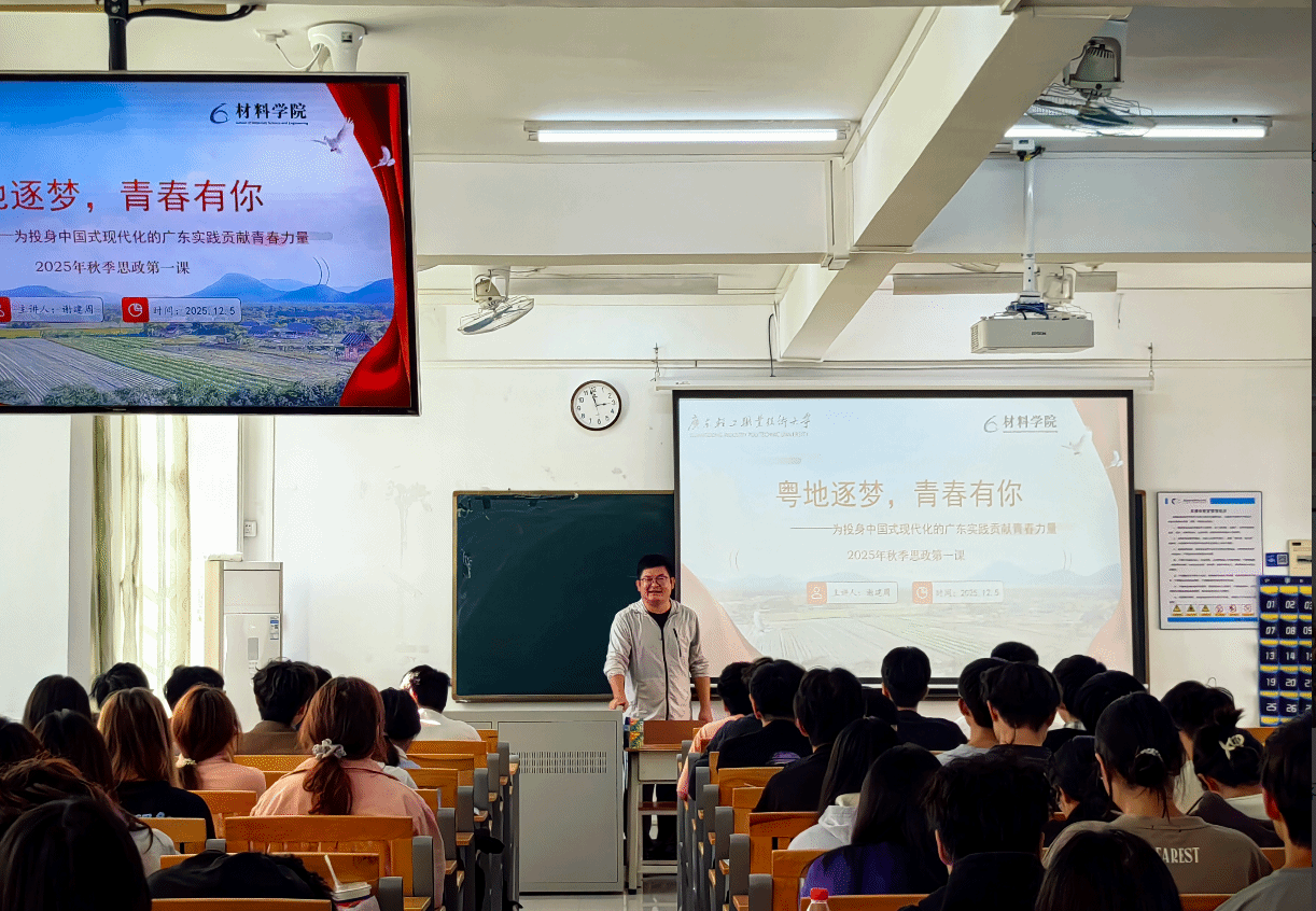 12月5日,谢建周书记在2号楼512-513以“粤地逐梦,青春有你”为主题向学生干部讲主题思政课。
