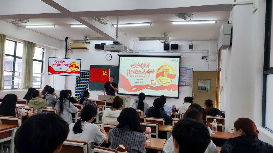 2025年10月21日,广东轻工职业技术大学材料学院党委书记谢国伟在南海南校区2号楼508教室,以“中国人民抗日战争胜利80周年:忆峥嵘岁月,传红色抗战精神”为主题,为学院30余名入党积极分子讲授2025年秋季学期“思政第一课”。